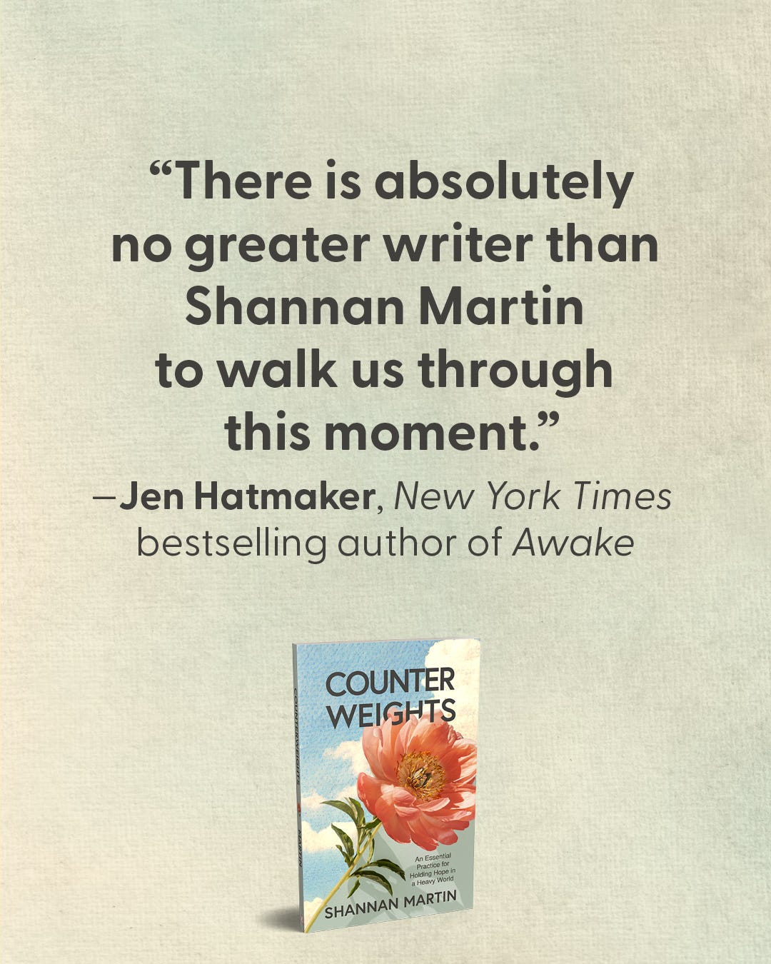 I wrote Counterweights because we’re carrying a lot. I believe in my guts that this book + the counterweights practice will make our lives better through a time that feels rather hellscapish.