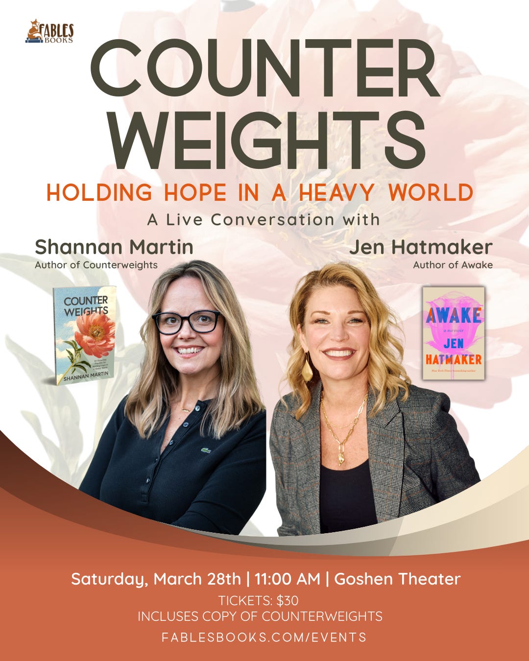 Counterweights: An Essential Practice for Holding Hope in a Heavy World is my fourth book, but this is my first book tour. Why? Because when I prioritize being with other people, I walk away more settled, a bit softer, and infinitely more hopeful. Connection and community are among my most reliable counterweights during heavy times, and these particular times feel positively leaden.
