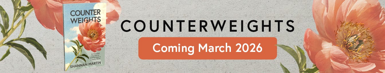 If that last group describes you, I’m launching Counterweights Weekly in November! It will be a short, simple, weekly email where I share my heaviest political weight along with one of my counterweights. No frills and totally free. It’s not on Substack, but rather an old fashioned email, where you are invited to simply open, read, and settle into a weekly rhythm of solidarity (and maybe even some hope.) Is that you?